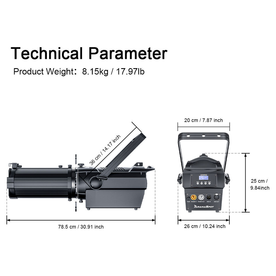 Faretto Profilato SHEHDS 250w 350w LED con Zoom Ottico, Luce da Palcoscenico LEKO