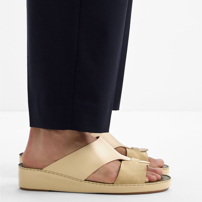 SHIKOL sandalo su misura arabica cintura ad anello in pelle Beige sandali da uomo italia tessuto arabico fatto a mano lussuose pantofole del golfo Ramadan