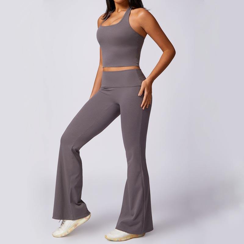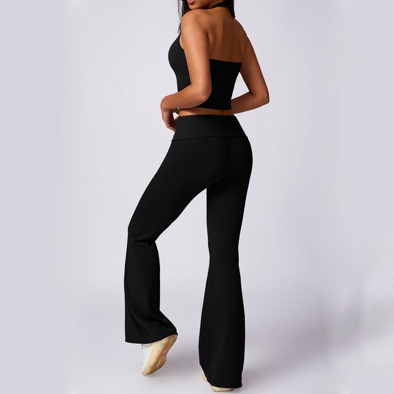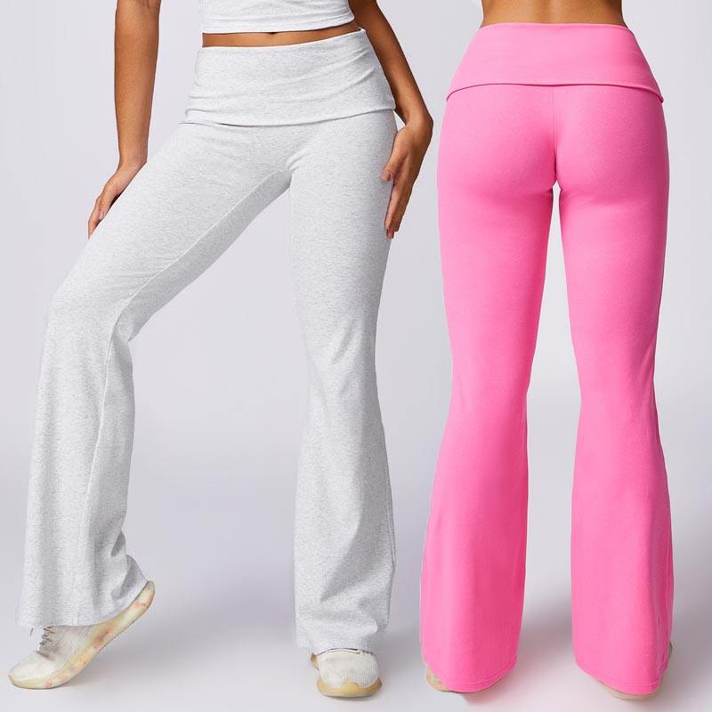 Pantaloni Skinny a zampa di cotone SHINBENE pantaloni Skinny piegati su Leggings elasticizzati con fondo a campana da Yoga