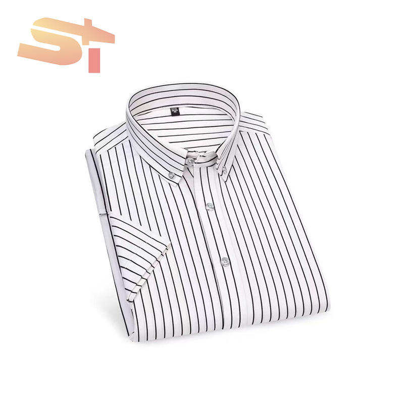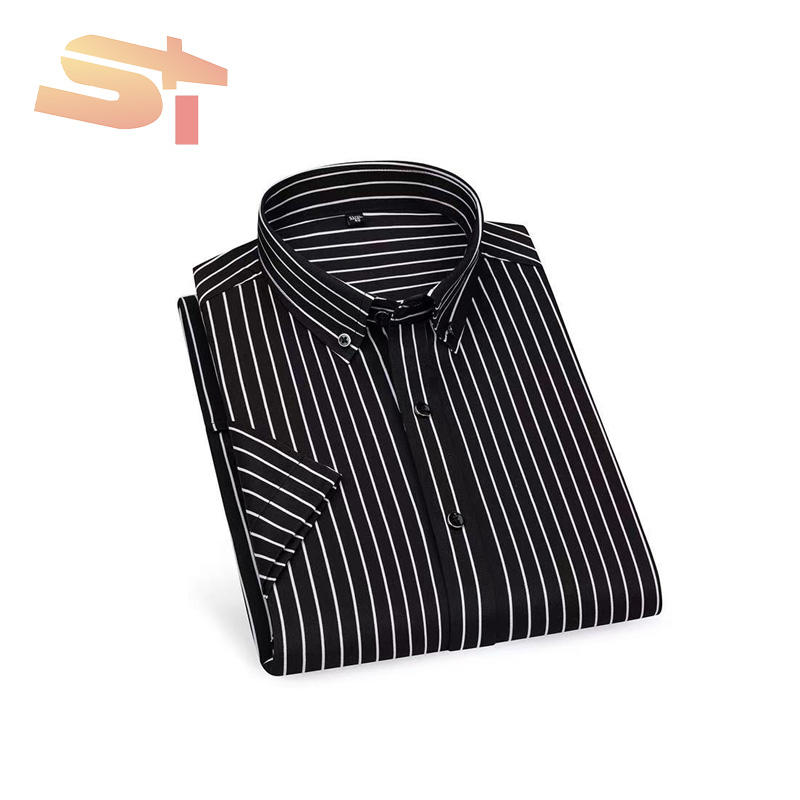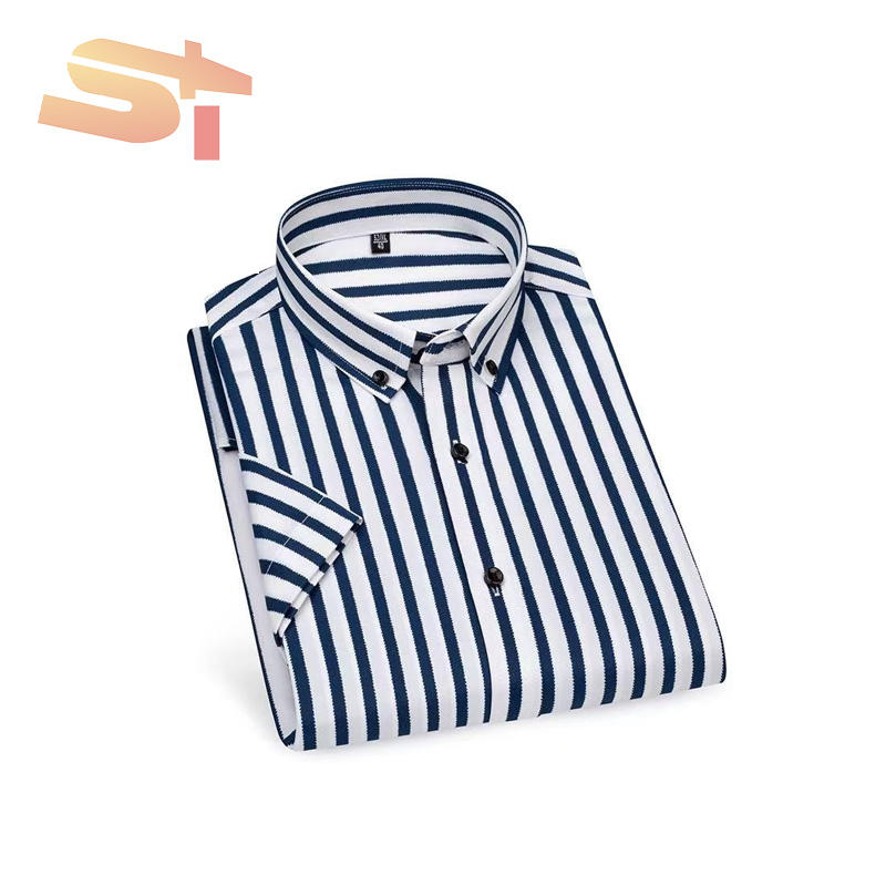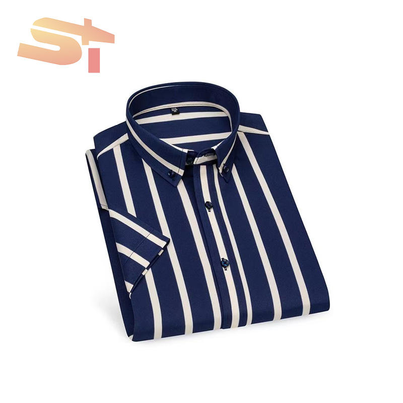 Camicia Estiva da Uomo SIKE a Maniche Corte in Seta Ghiaccio Elastica a Righe, Stile Coreano Casual