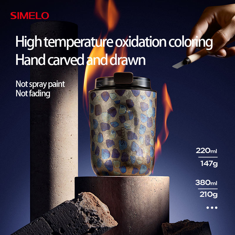 Nome del prodotto:Tazza isolata in puro titanio fatta a mano blu bruciato