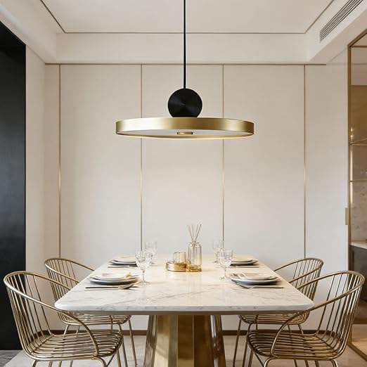Lampada a Sospensione SIMIG in Stile Arte Moderna, Lampadario a Striscia ad Anello Nero e Oro in Ferro, Adatto per Ingresso e Camera da Letto