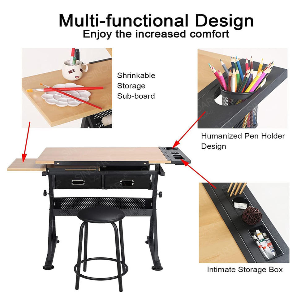 SINOART 2 cassetti tavolo da disegno inclinabile regolabile in legno regola tavolo da tavolo architettura tavolo tavoli da disegno disegnare con sgabello