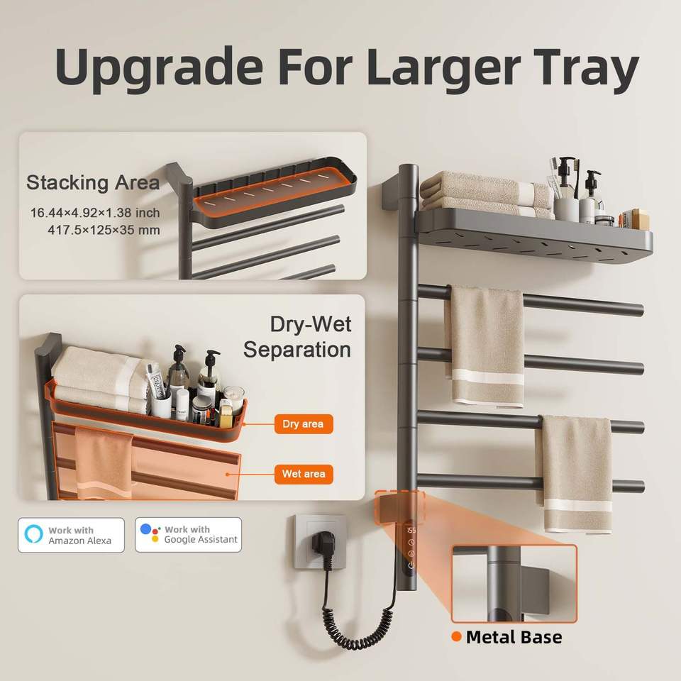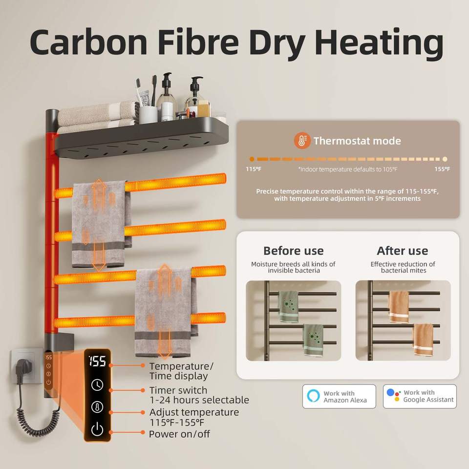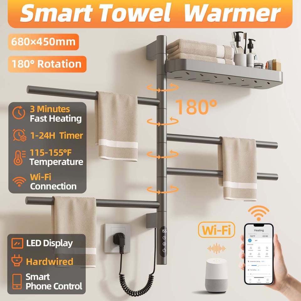 SIOYIE Scaldasalviette Elettrico Intelligente da Parete Girevole con Barre Orientabili e Timer Smart per Bagno