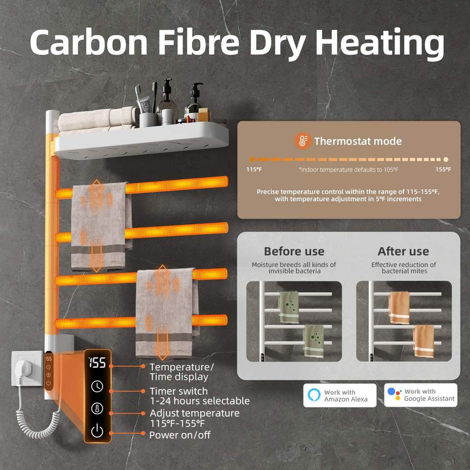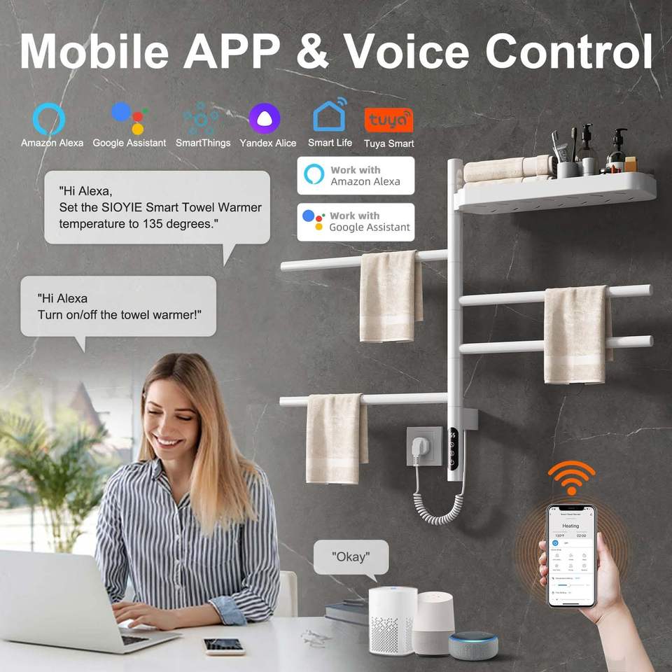 SIOYIE Scaldasalviette Elettrico Intelligente da Parete Girevole con Barre Orientabili e Timer Smart per Bagno