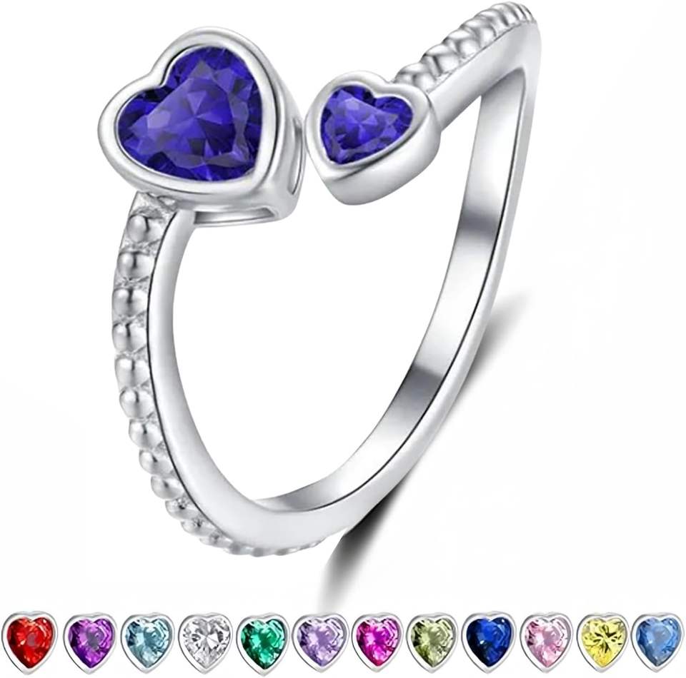 SImple Shiny Adjustable Open Heart Ring Rainbow Zodiac Month Band Birthstone Rings Birthday Gifts to My Daughter