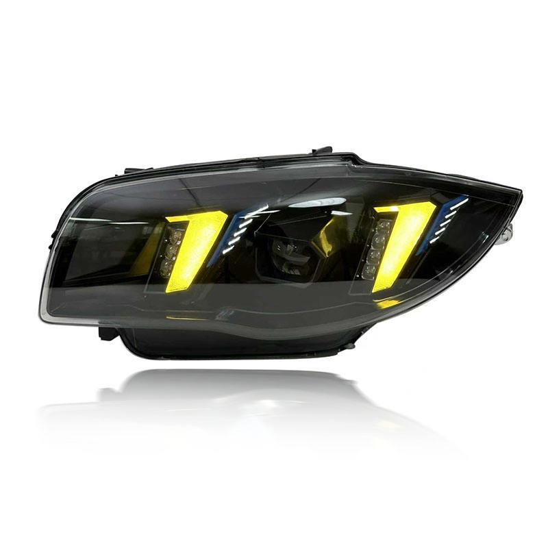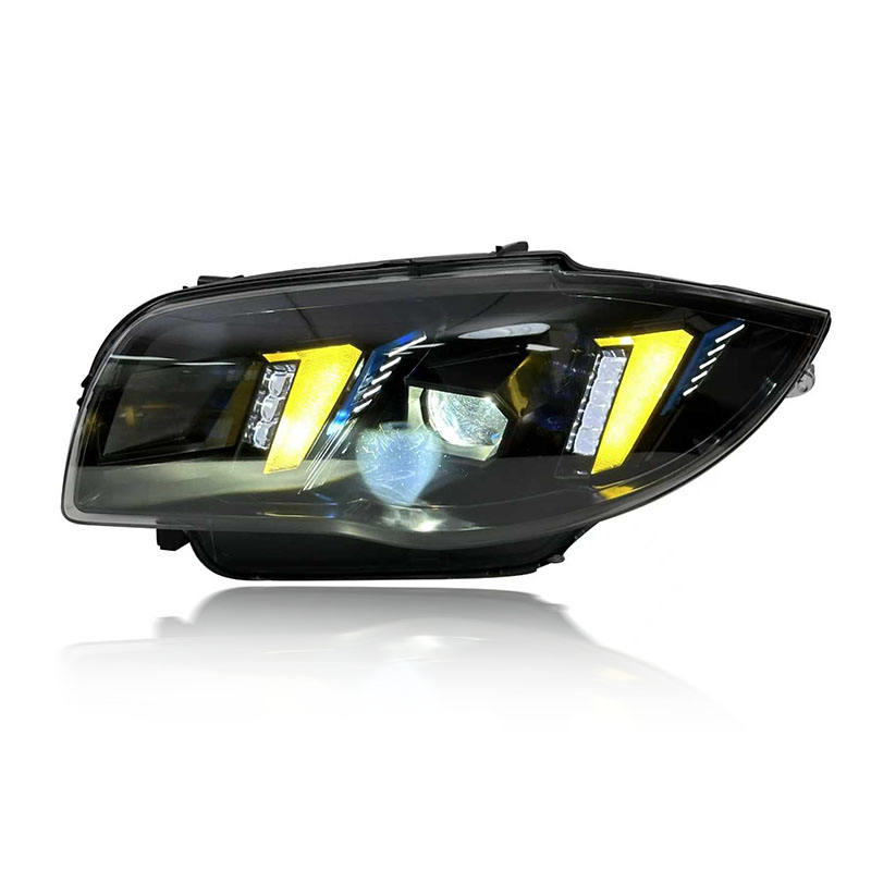 SJC Car Accessories Headlight for BMW 1 Series E87 E82 Yellow White Dual Color Drl Snake Eyes Style Headlight Front Lamp
