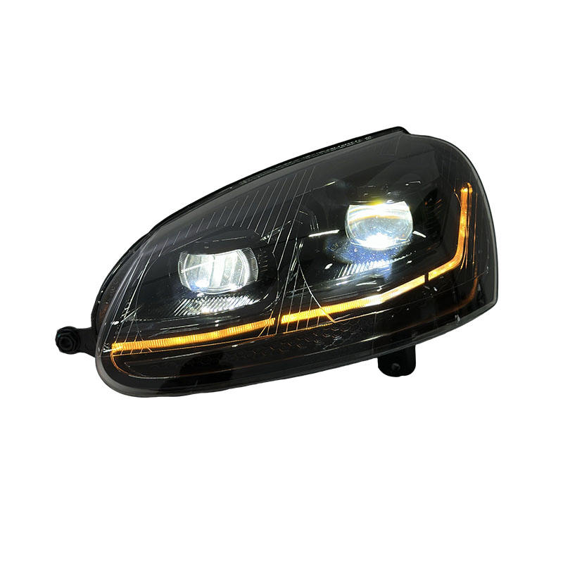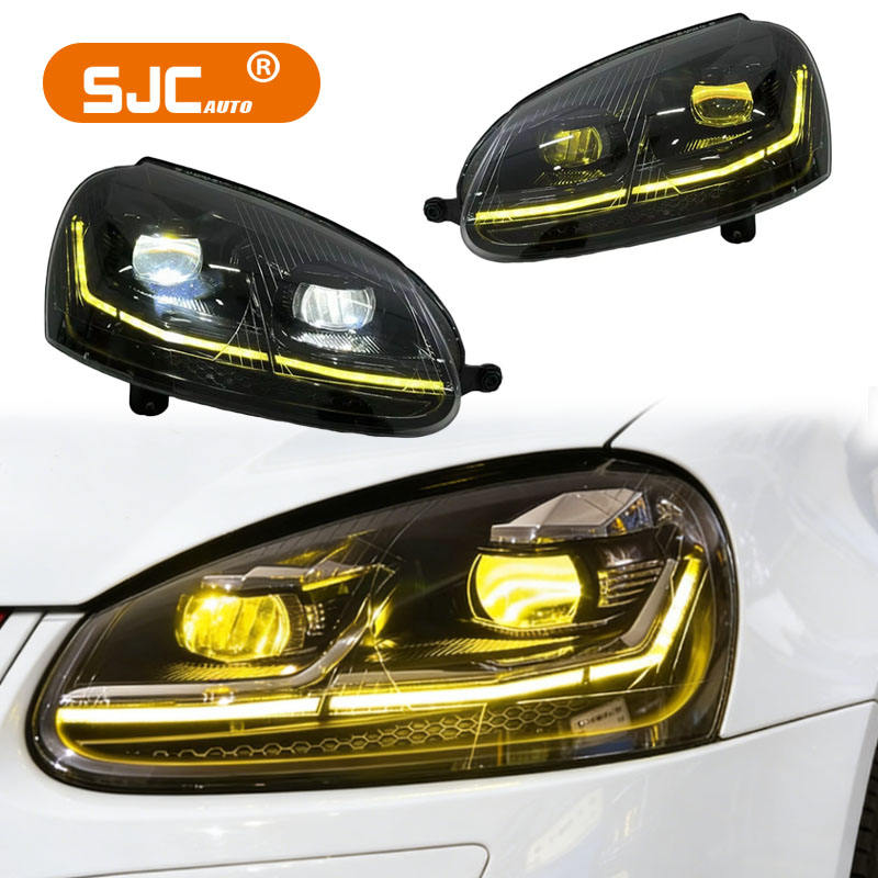 Fari Bicolore SJC per VW Golf 5 06-10, Grigio Fumé con Luci Diurne Gialle e Bianche, Gruppo Ottico Anteriore con Indicatori di Direzione e Retromarcia