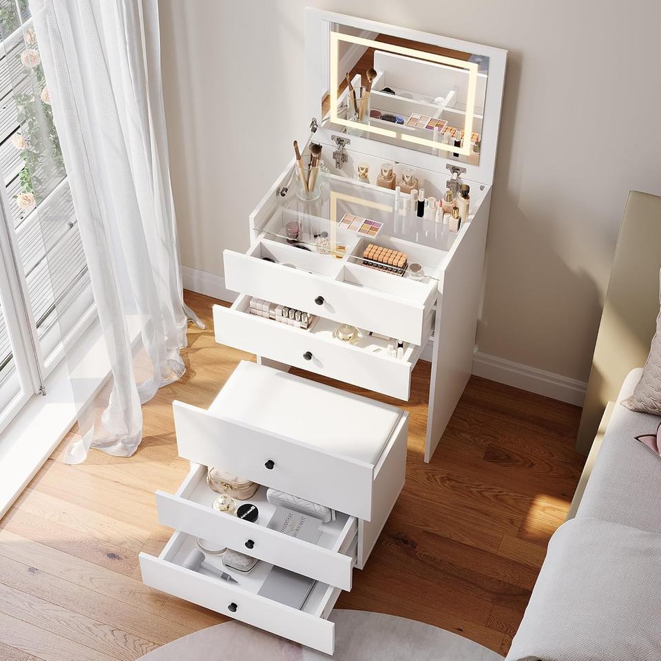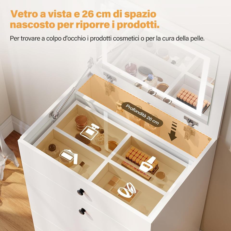 con luci, design 2 in 1, sgabello e specchio pieghevole