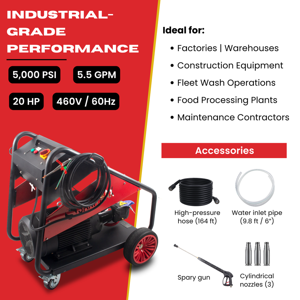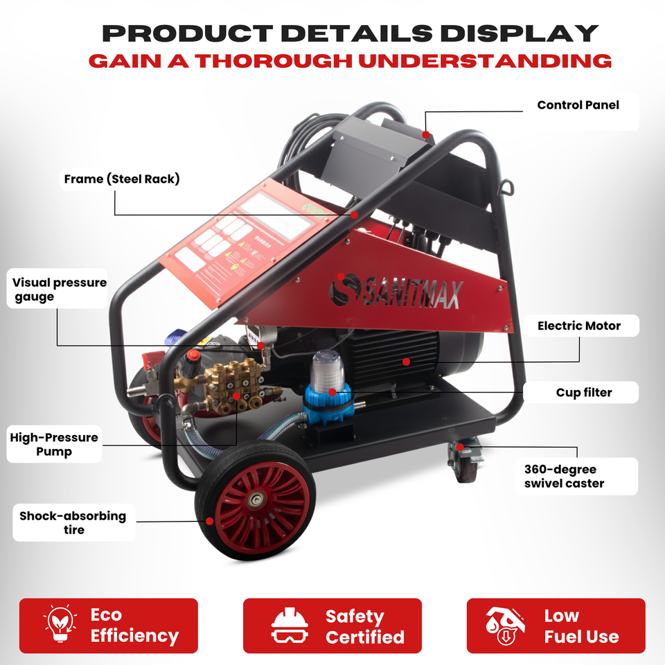 Sanitmax Sm5000 Heavy Duty Electric Pressure Washer 5000 Psi 5.5 Gpm 20 Hp Ceramic Pump Car Wash Shop Cleaner