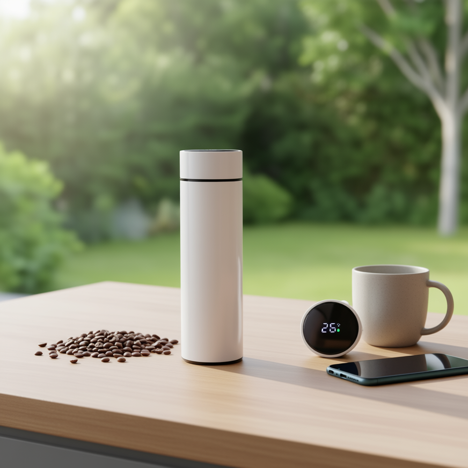 Borraccia Termica Intelligente Myrva 17cm a Doppia Parete in Acciaio Inossidabile con Display Digitale della Temperatura Ricaricabile per Uso Domestico e Esterno