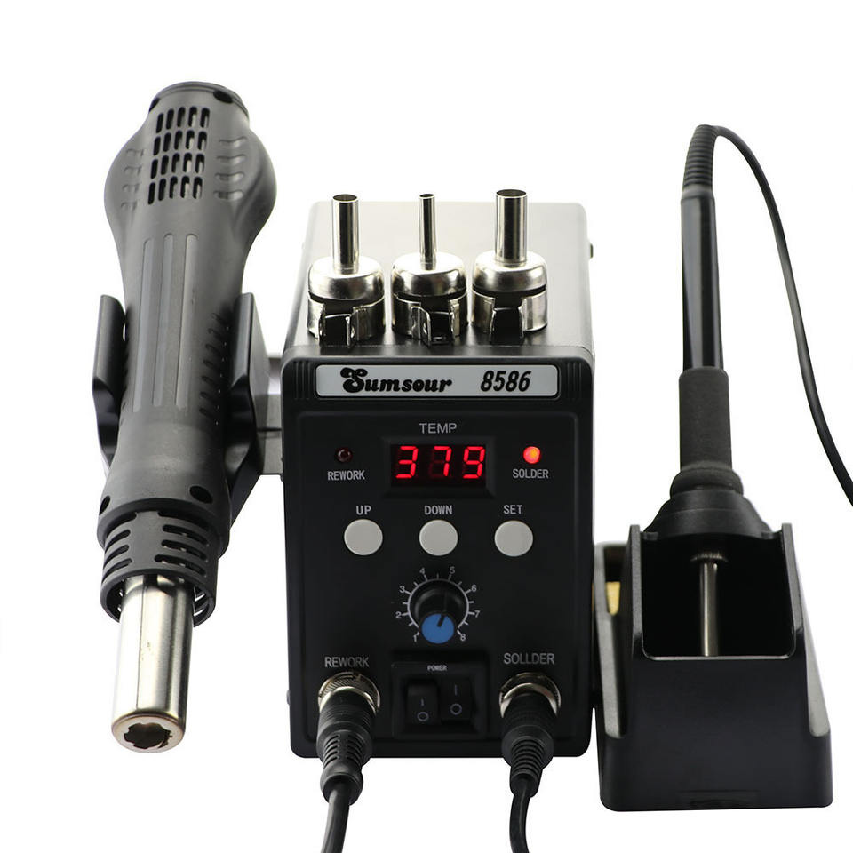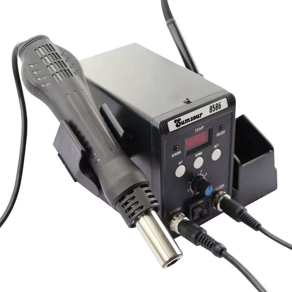 Stazione di Rilavorazione e Dissaldatura SMD BGA 8586 110V / 220V 760W ESD con Saldatore e Pistola Termica ad Aria Calda Kit di Attrezzi per Riparazioni e Saldatura