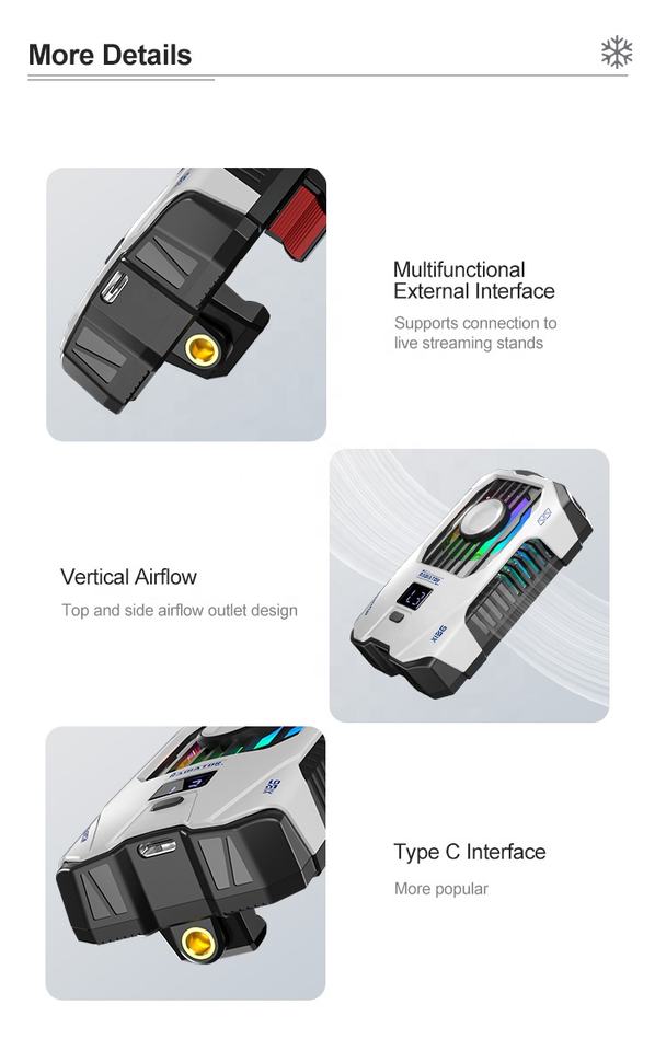 Portable, Air fan cooling, Semiconductor cooling, RBG lighting, Rechargeable, for live streaming, Digital display, Peltier cooling effectFeature