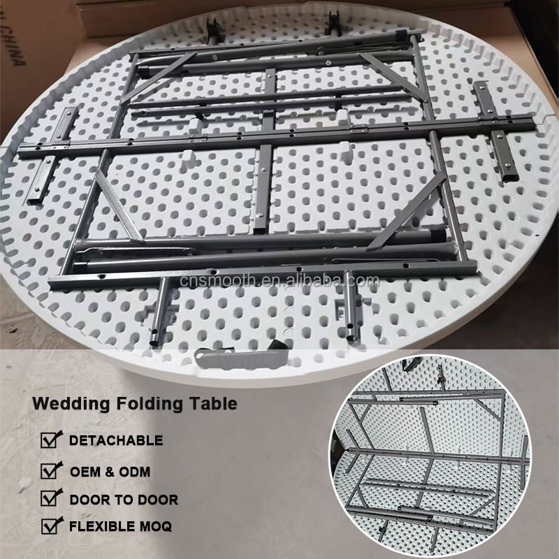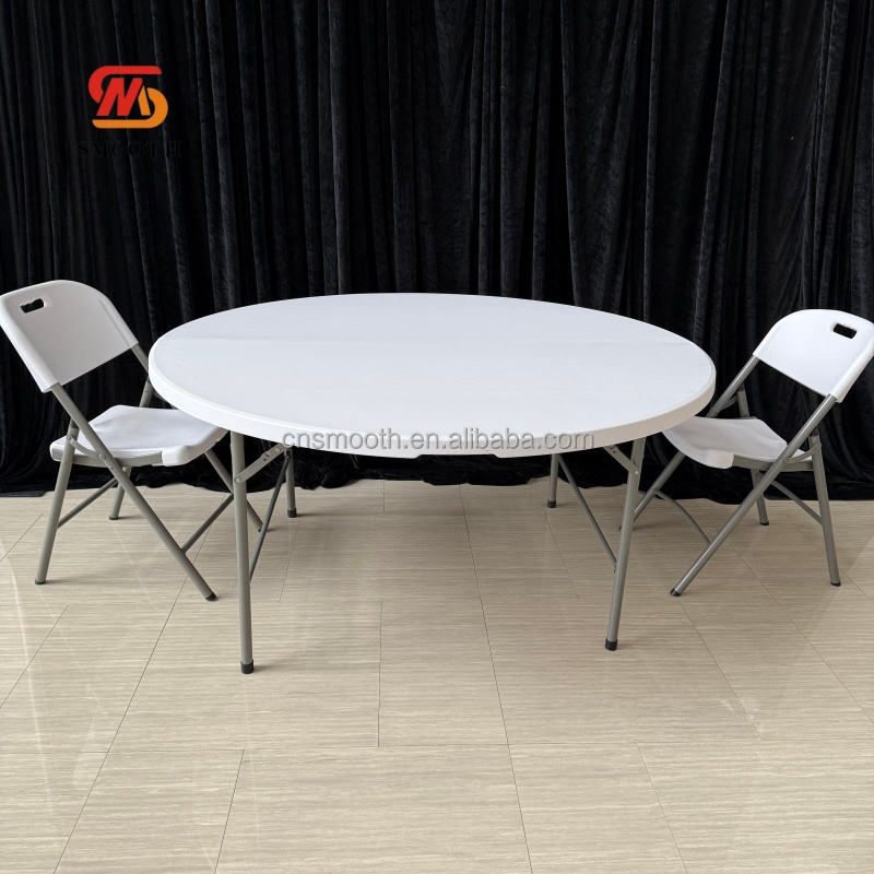 SMOOTH High Quality White Round Banquet Fold Table Chairs Plastic Resin Table for Wedding Catering Decoration