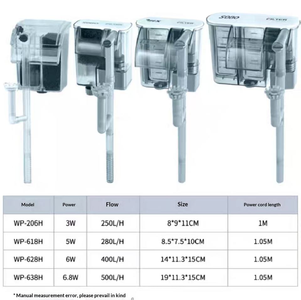 Filtro Esterno SOBO in Plastica 3-in-1 per Acquario, Pompa di Ossigenazione Ultra Silenziosa a Risparmio Energetico per Piccoli Acquari e Terrari per Tartarughe