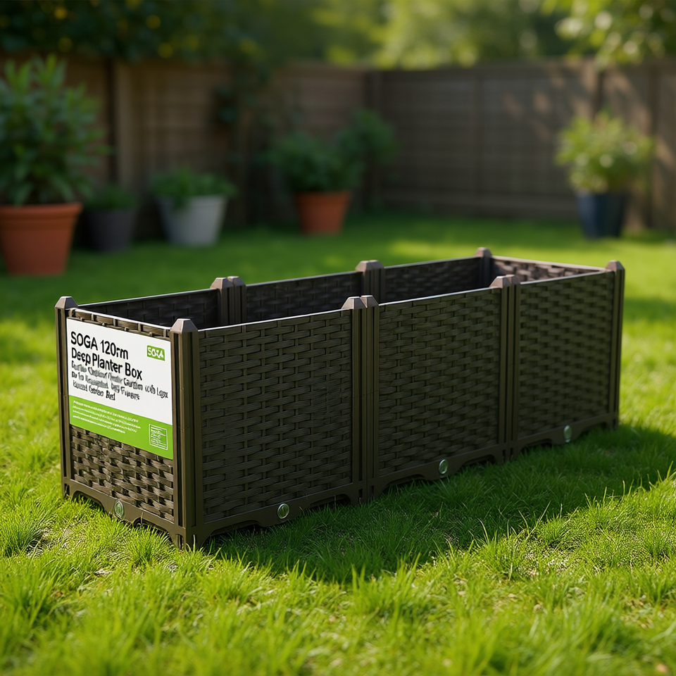 SOGA Fioriera Profonda 120cm in Plastica con Gambe per Ortaggi Erbe Fiori, Letto da Giardino Rialzato per Esterni