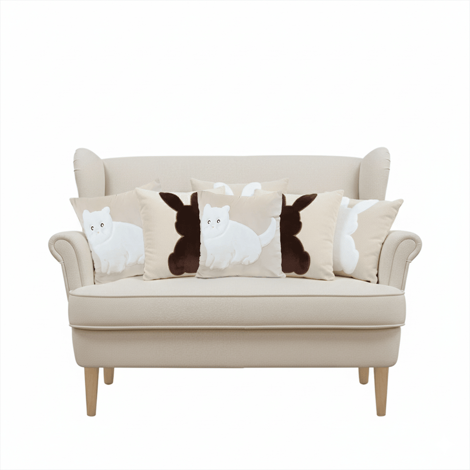 SOGA 45cm Animal Silhouette Decorative Pillowcase Set 6PC White Bunny Bunny and Cat Throw Pillows