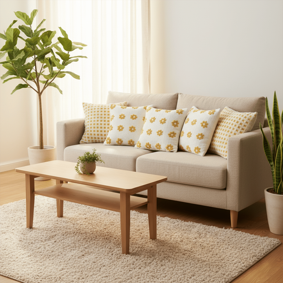 Set di 5 Cuscini Decorativi SOGA, Federe con Motivo a Pois e Catena di Margherite Retrò per Arredamento Casa