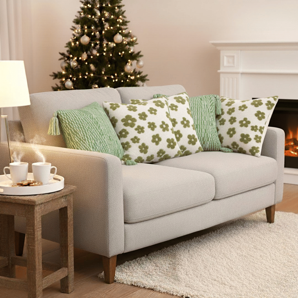 SOGA 5-Piece Garden Bloom Floral and Sage Chevron Tassel Decorative Pillowcase Set Throw Pillow Covers