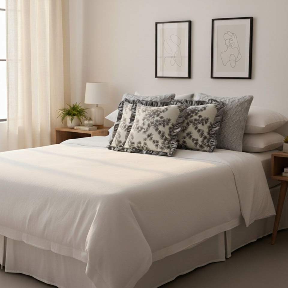 SOGA 5-Piece Gray Decorative Pillowcase Set Floral Ruffle and Diamond Knit Cushion Covers for Cozy Home