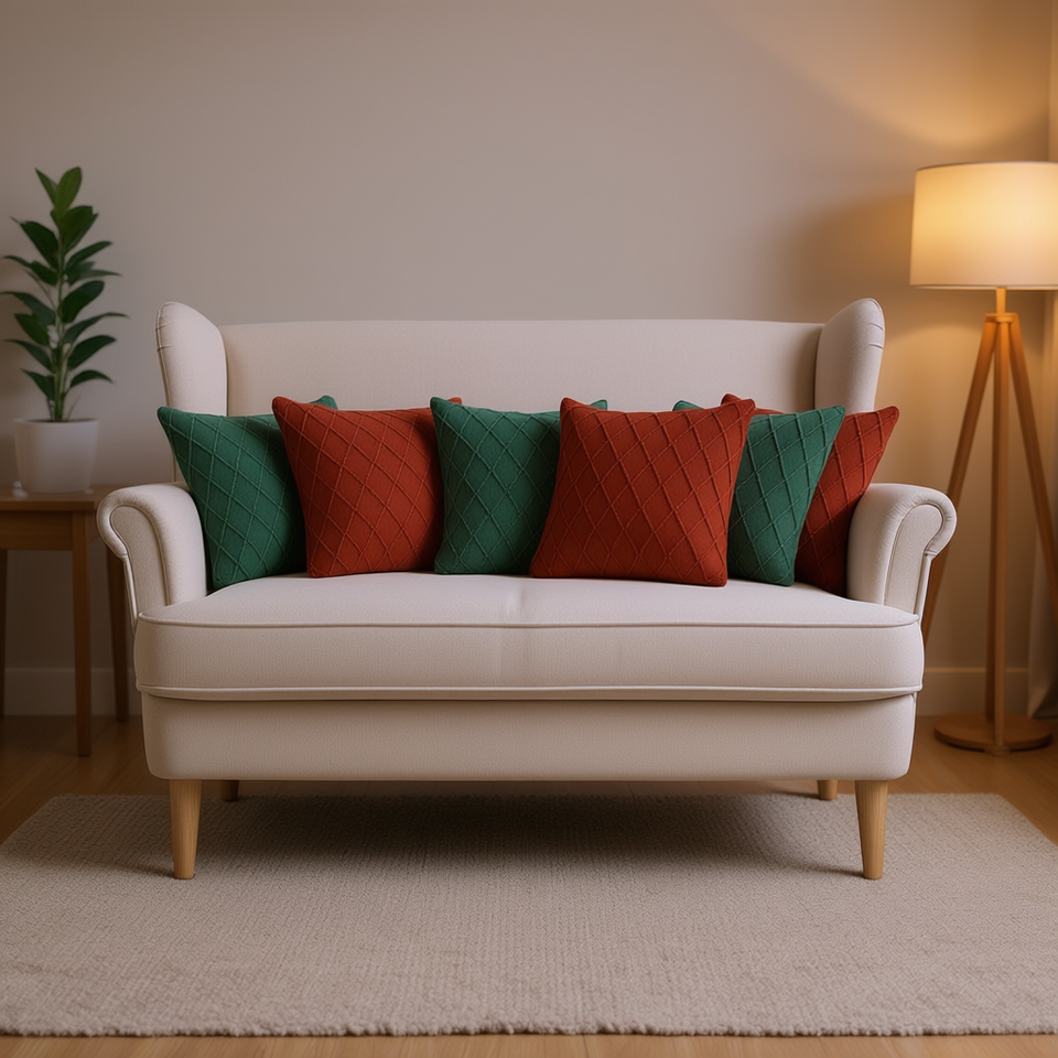 SOGA Set di 6 fodere per cuscini in maglia diamantata da 45 cm, rosso e verde, per divani del soggiorno