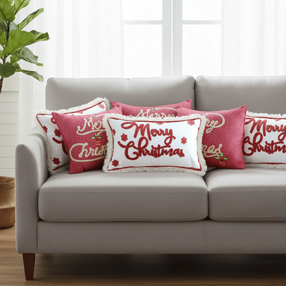 SOGA 6PC Christmas Decorative Pillow Cover Set Elegant 3x 40x60cm Bold 'Merry Christmas' Script Pillowcases
