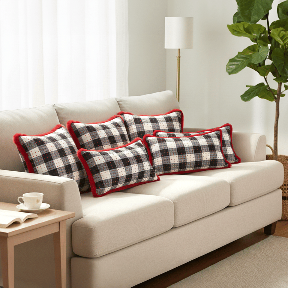 SOGA CozyFest Buffalo Plaid Fleece Pillowcase Set 6PC 4x 45cm CozyFest Buffalo Plaid Pillow Covers 2x 30x50cm Reading Bed Rest