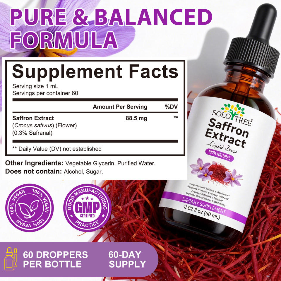SOLOTREE Integratori di Zafferano Puro, Tintura Biologica Vegana, Estratto Liquido di Crocus Sativus in Gocce per Supporto Antiossidante e Rilassante