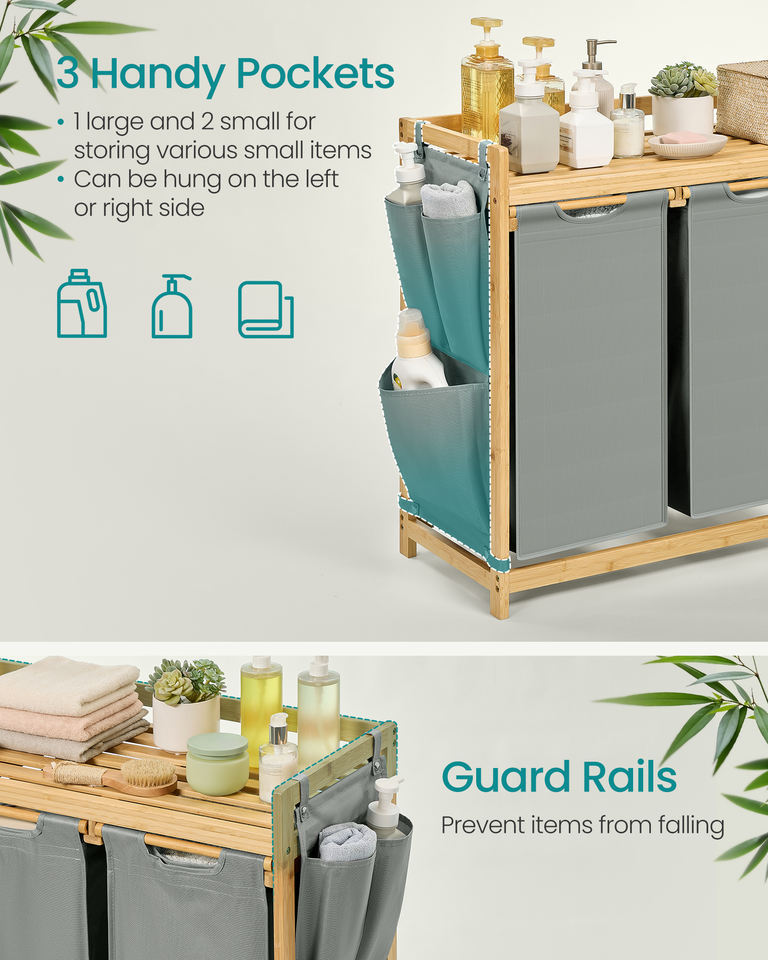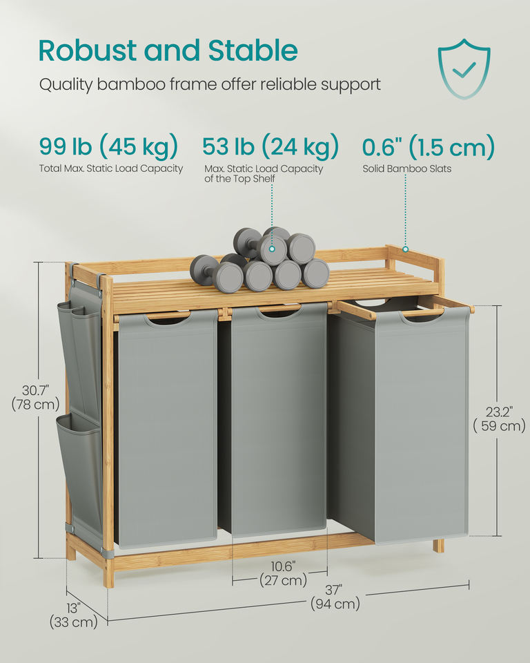 Nome del prodotto:SONGMICS Cesto Portabiancheria a 3 Scomparti con Ripiano