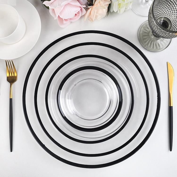 SONYA Piatti di Presentazione Classici da 13 Pollici in Vetro Trasparente con Bordo Nero per Uso Domestico