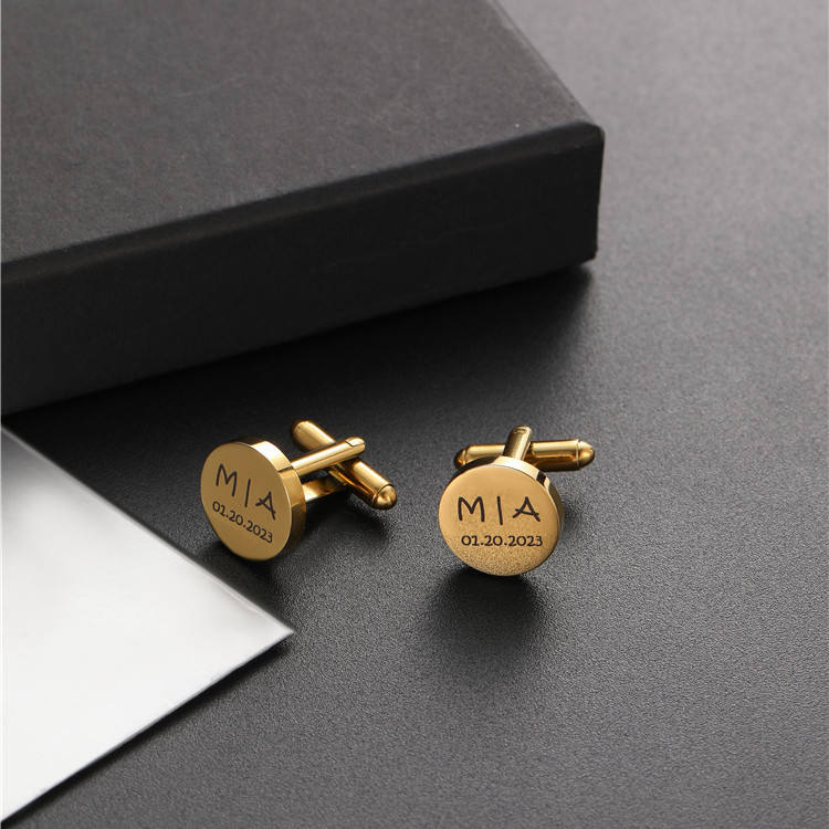 Gemelli Personalizzati SP per Uomo in Acciaio Inossidabile, Incisi con Lettera e Motivo, Forma Rotonda