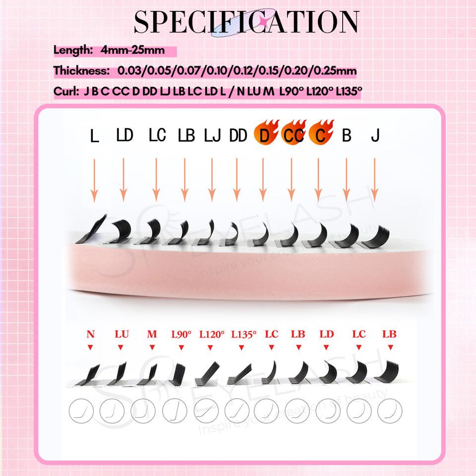SP Ciglia con Logo personalizzato facile ventagli ciglia 0.03 0.05 0.07 C D arricciatura Mega Volume ciglia fatto a mano facile ventaglio ciglia in fiore