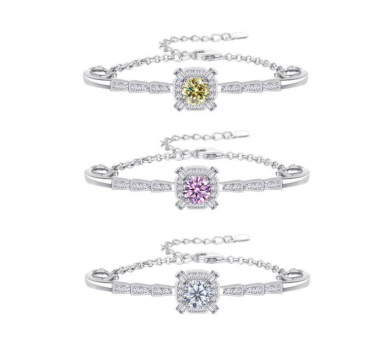 SPJ a basso prezzo scintillante 925 in argento Sterling bracciale gioielli in zircone cubico giallo rosa pietra diamante bracciali Tennis donna