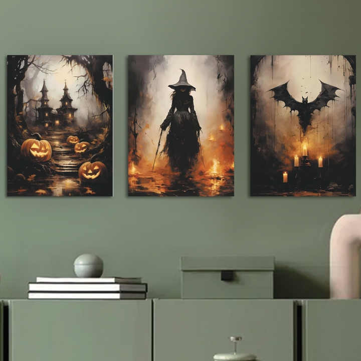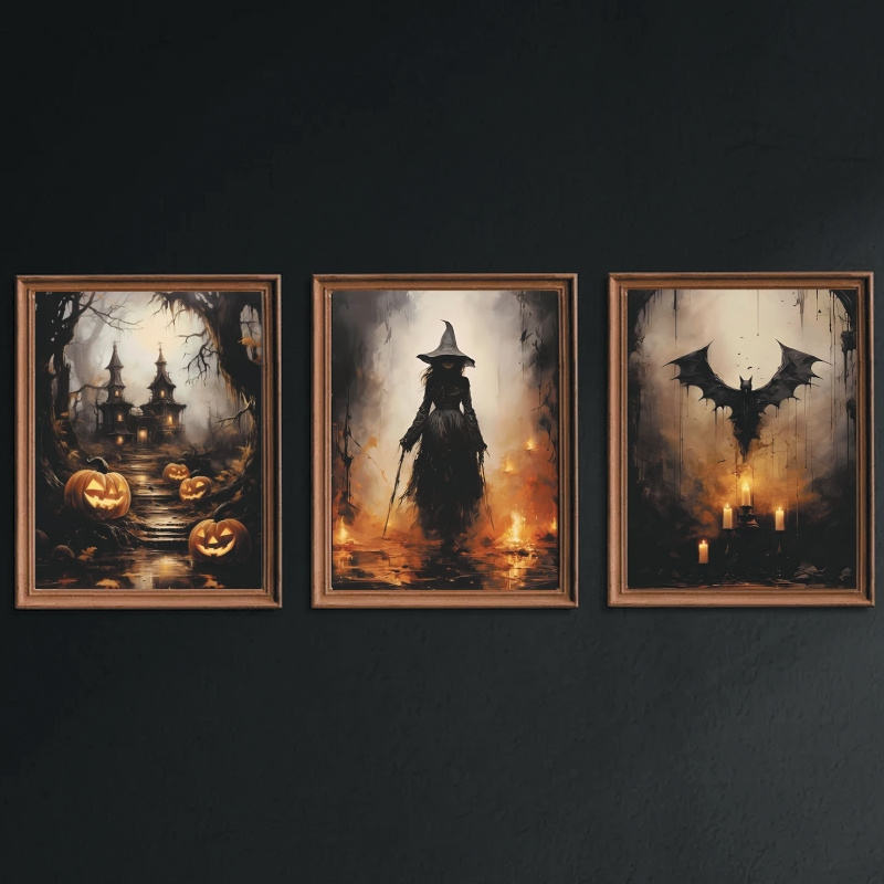 Quadro quadrato nuovo arrivo decorazione murale di Halloween stampe su tela zucca casa stregata pittura su tela pipistrello strega
