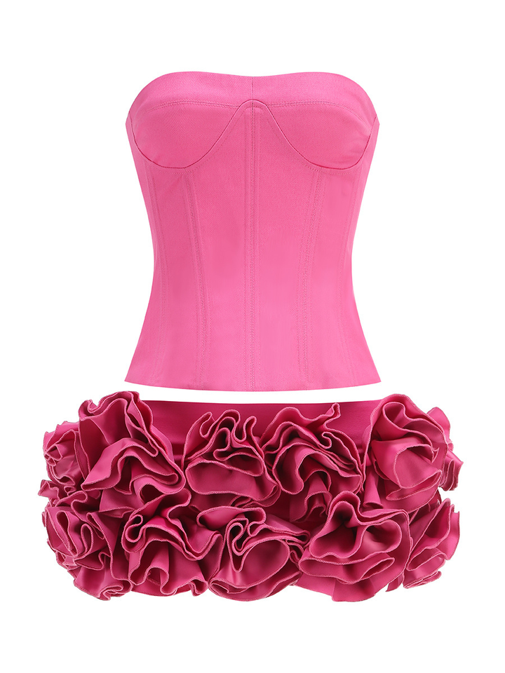 SS2367 Hot Fashion Summer Sleeveless Two Pieces Set Sexy Tops Matching Flowers Mini Skirt Women Two Pieceset