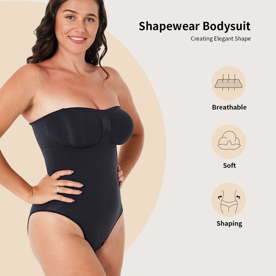 SSHAPER Body Modellante Senza Spalline da Donna, Comodo e Traspirante, in Maglia, Effetto Snellente e Modellante, Corsetto Senza Cuciture