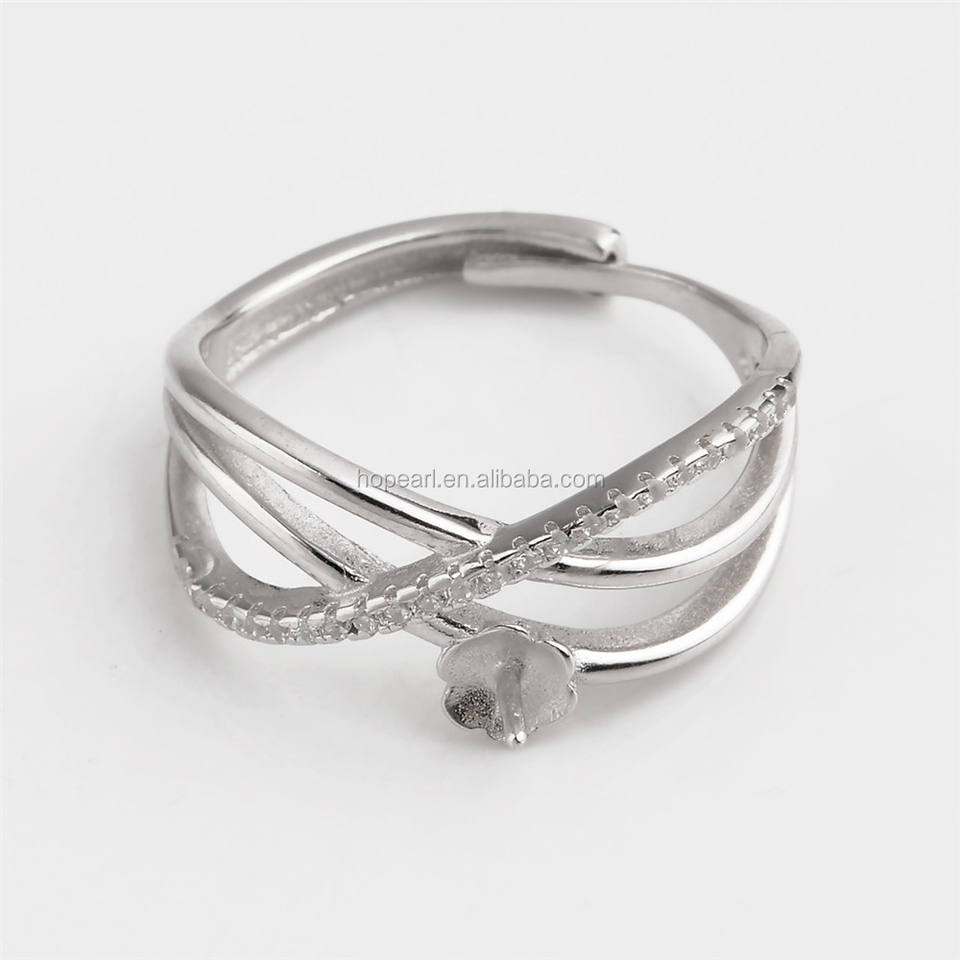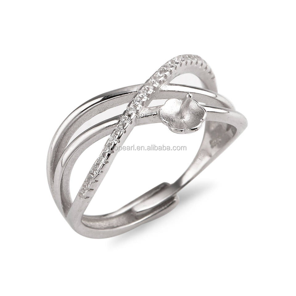 SSR192 Argento Componenti 925 Giudizio Anello di Base del Lineare Crisscross Anello Perla di Montaggio