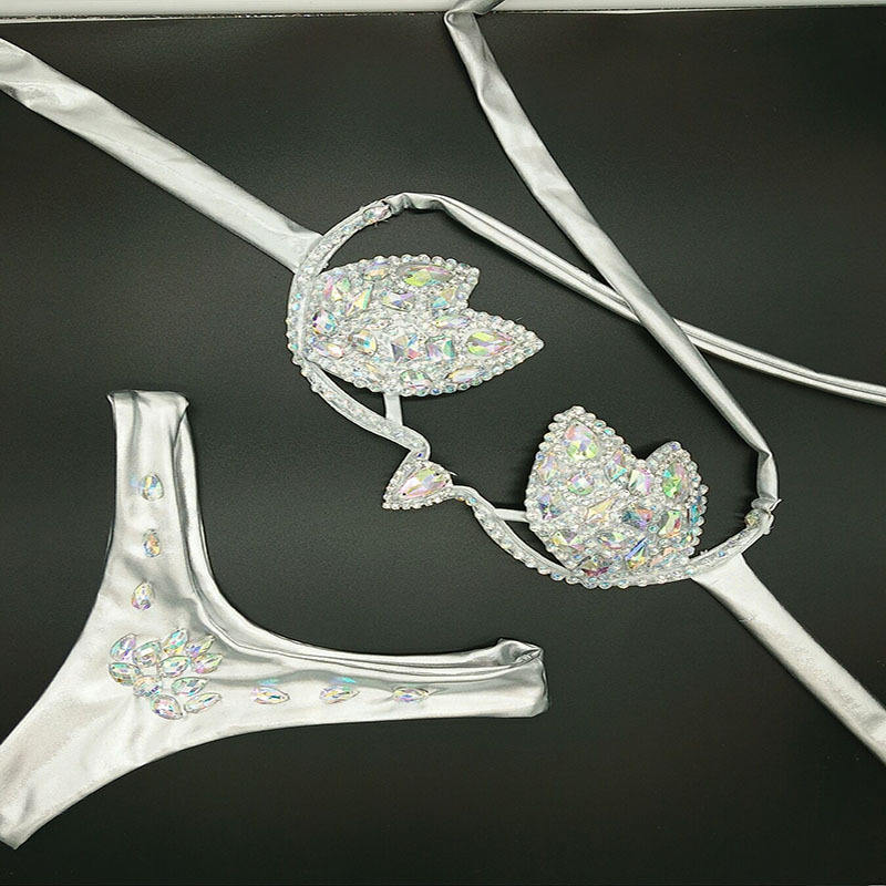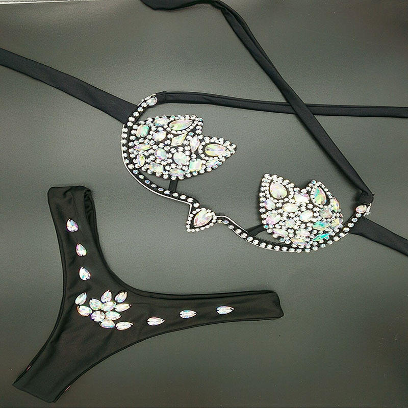 STOCK 5Colors Underwire Push up Bikini Double Lined Fabric Seamless Crystal Diamond Swimwear