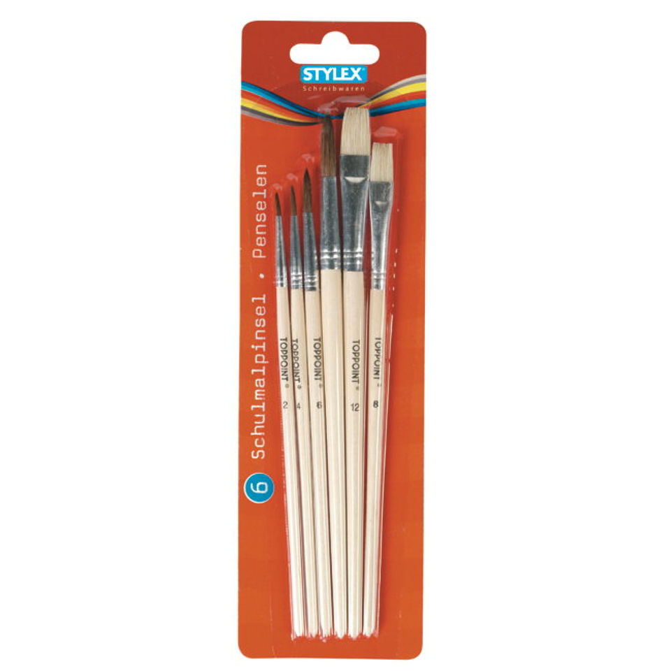 STYLEX School Brush Set Bristle Nylon Hair Material Paint Brushes White Blue Plastic Handle Oil Watercolor Brushes for Painting