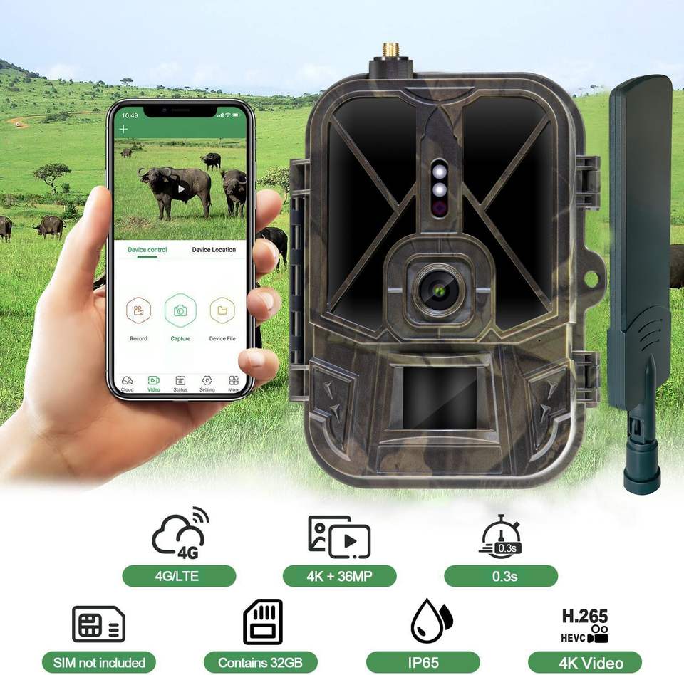 Fotocamera da Caccia SUNTEKCAM HC-940Pro Li 4G LTE CMOS con Batteria al Litio 8000mA, 120MP 4K, Fotocamera per Fauna Selvatica con SMTP/FTP/CLOUD APP