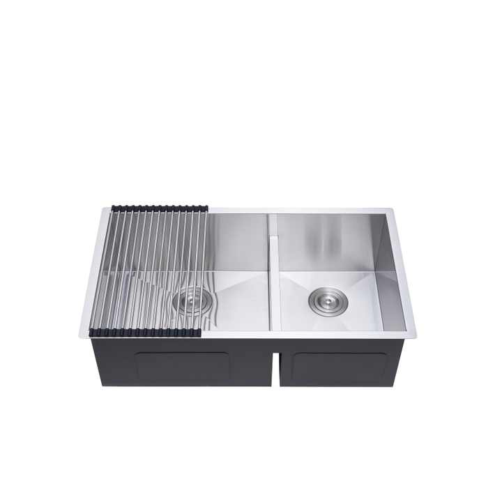 Lavello a Doppia Vasca in Acciaio Inox SUS304 di Qualità Superiore, Fatto a Mano, Design Moderno con Gradino, Dimensioni Personalizzabili, Vendita all'Ingrosso
