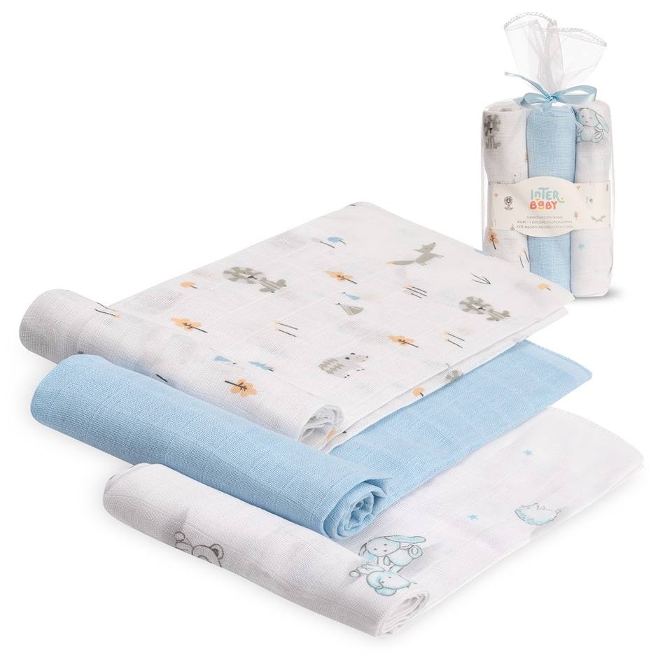 SWADDLES 80X80-PACK3 100% Cotone Tessuto MOD. FOREST JUNGLA Motivo Animale Blu