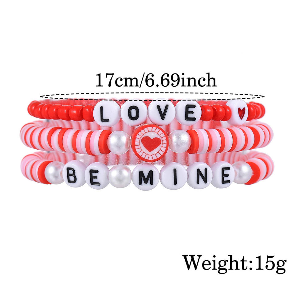 SY-41 Love Be Mine Heart Hand Jewelry Handmade Elastic Polymer Clay Pearl Resin Beads 3pcs Bracelet Kit