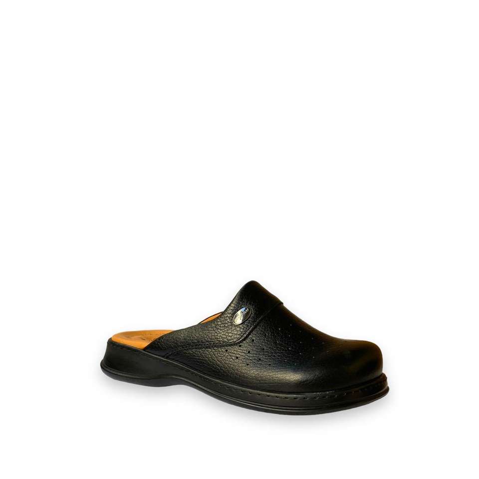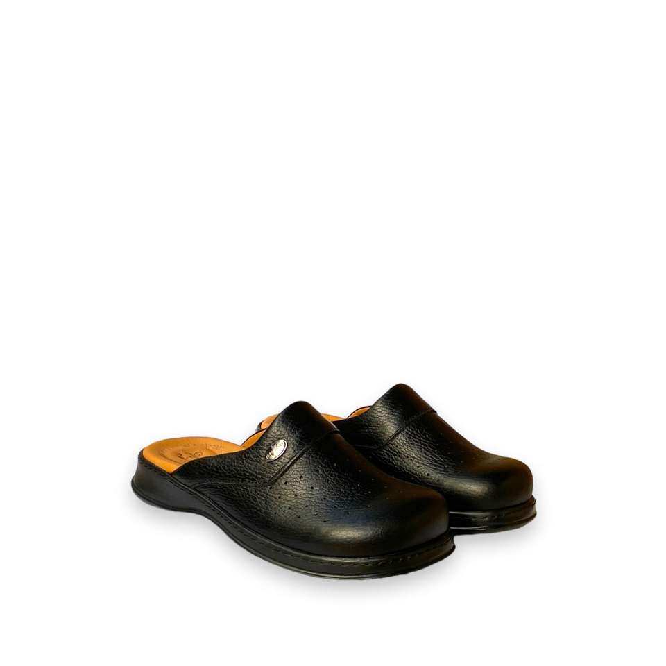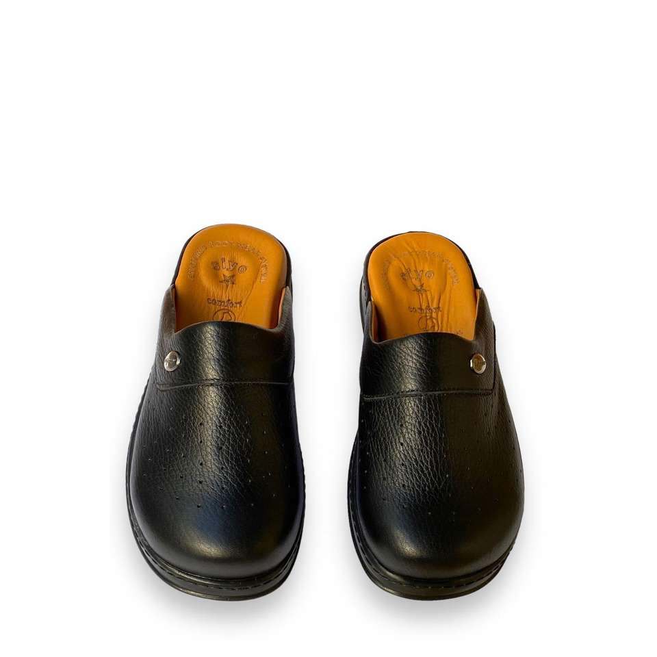SY 650 Genuine Leather Orthopedic Black Sabo Slippers Doctor Hospital Cook Work Slippers