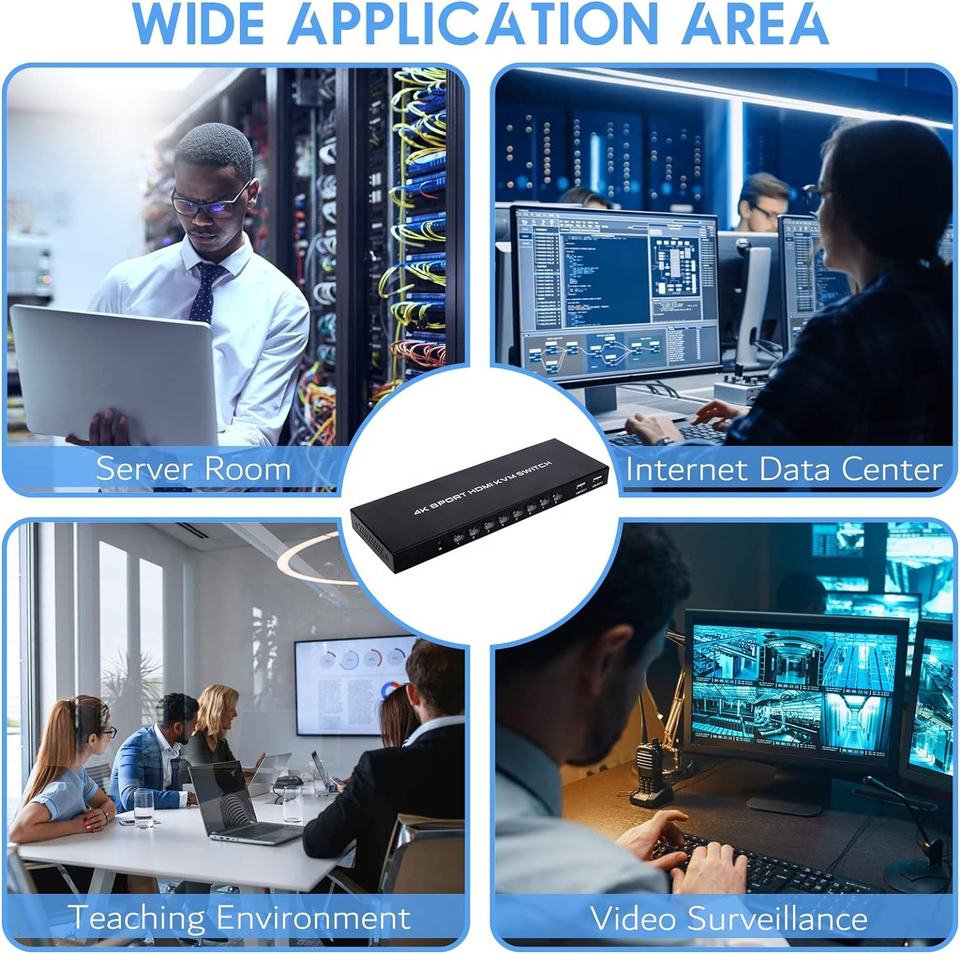 SYONG 8 Port KVM Switch HDMI 4K 30Hz , SYONG Rack Video HDMI KVM Switcher Console 8 in 1 out + 8-Pack cavi