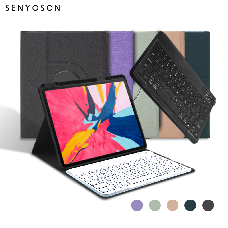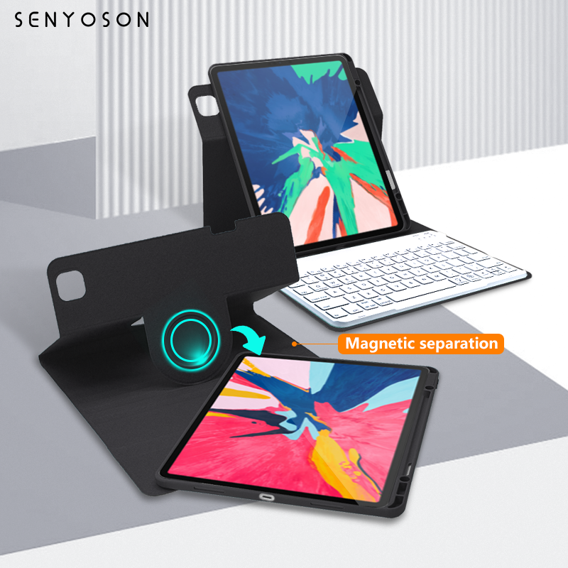 Custodia Protettiva in Pelle PU Rotante a 360 Gradi SYX con Tastiera e Slot per Penna, Custodia con Tastiera Touch per iPad