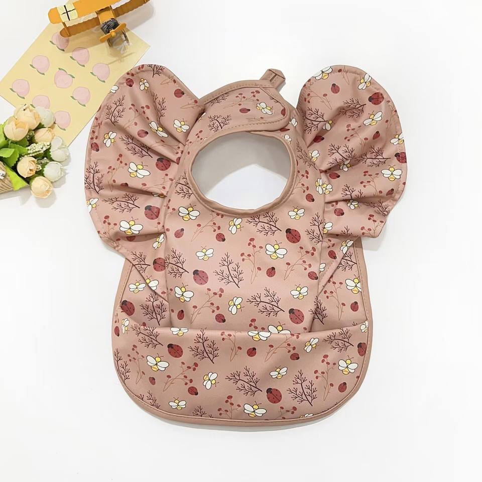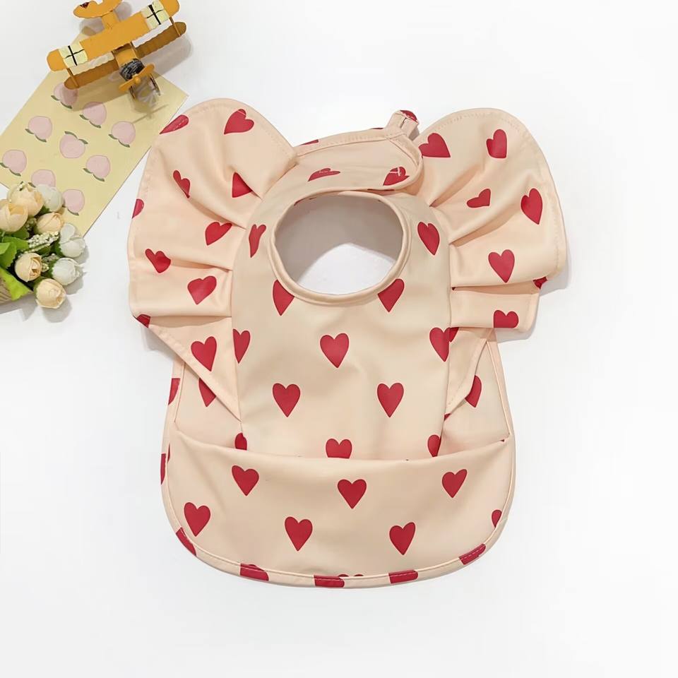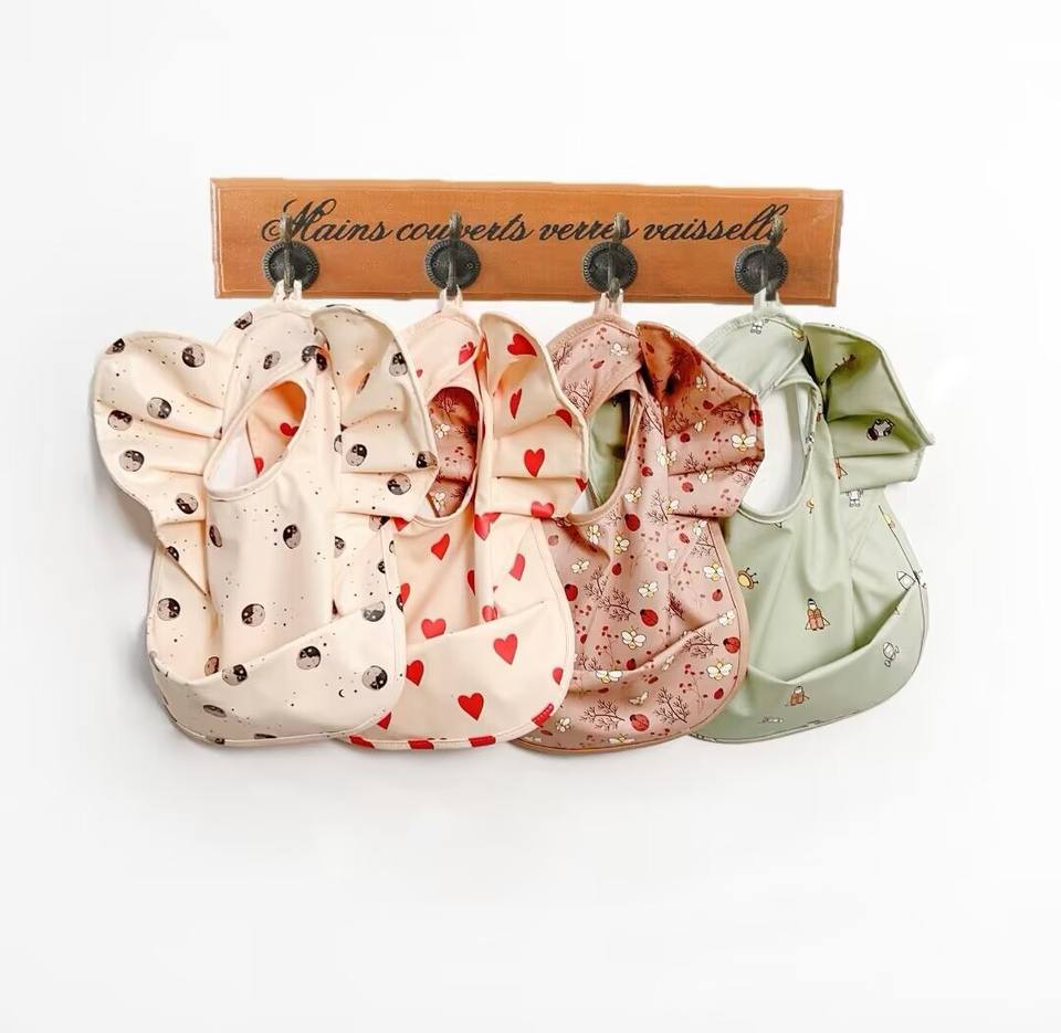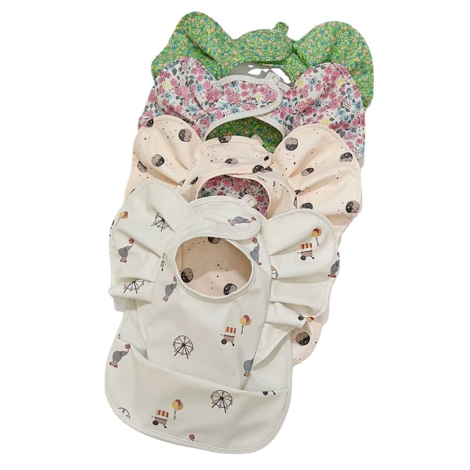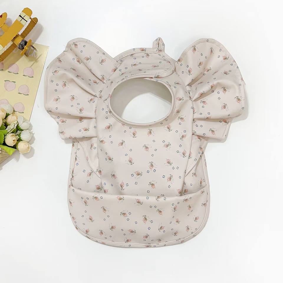 SZPAN facile da pulire bavaglini impermeabili in poliestere PU con volant ali d'angelo acchiappa grembiule grembiule per bambino