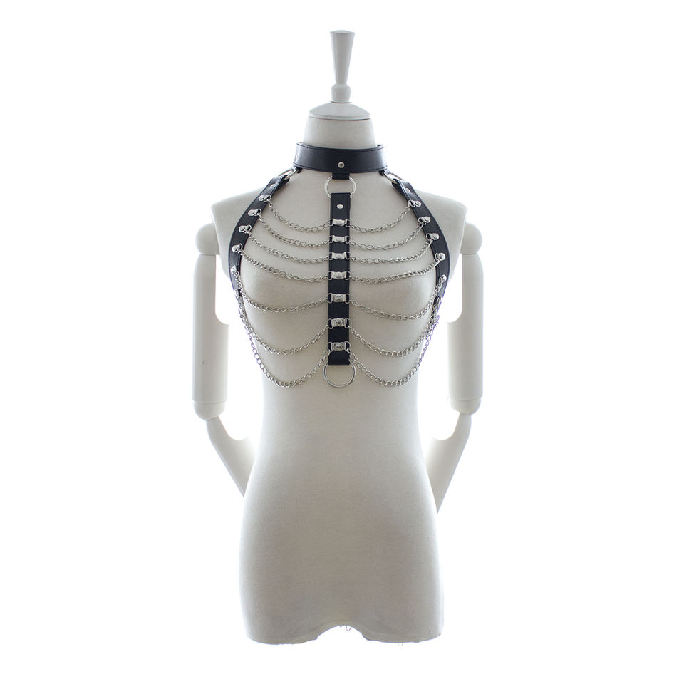 SacKnove Club petto collo collare catena Sexy Costume gotico cinture donna Bdsm Restraint Leather Bondage Harness