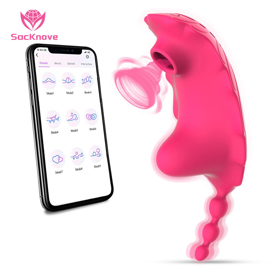SacKnove Silicone viola rosa rosso farfalla invisibile 9 velocità vibrazione mutandine uovo succhiare vibratore con telecomando App