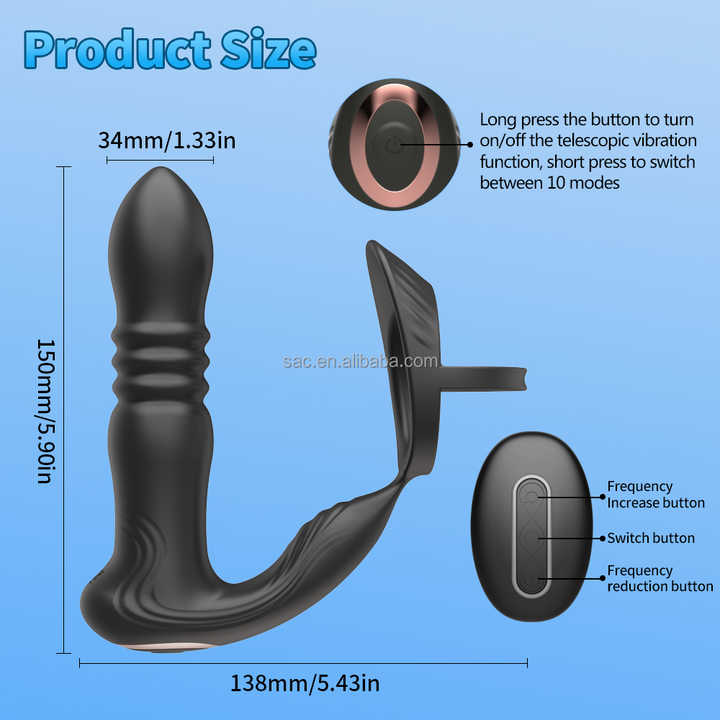 Anello Anale Massaggiatore Prostatico SacKnove con Funzione Telescopica e Pulsante, Stimolatore a Impulsi Elettrici e Telecomando Wireless